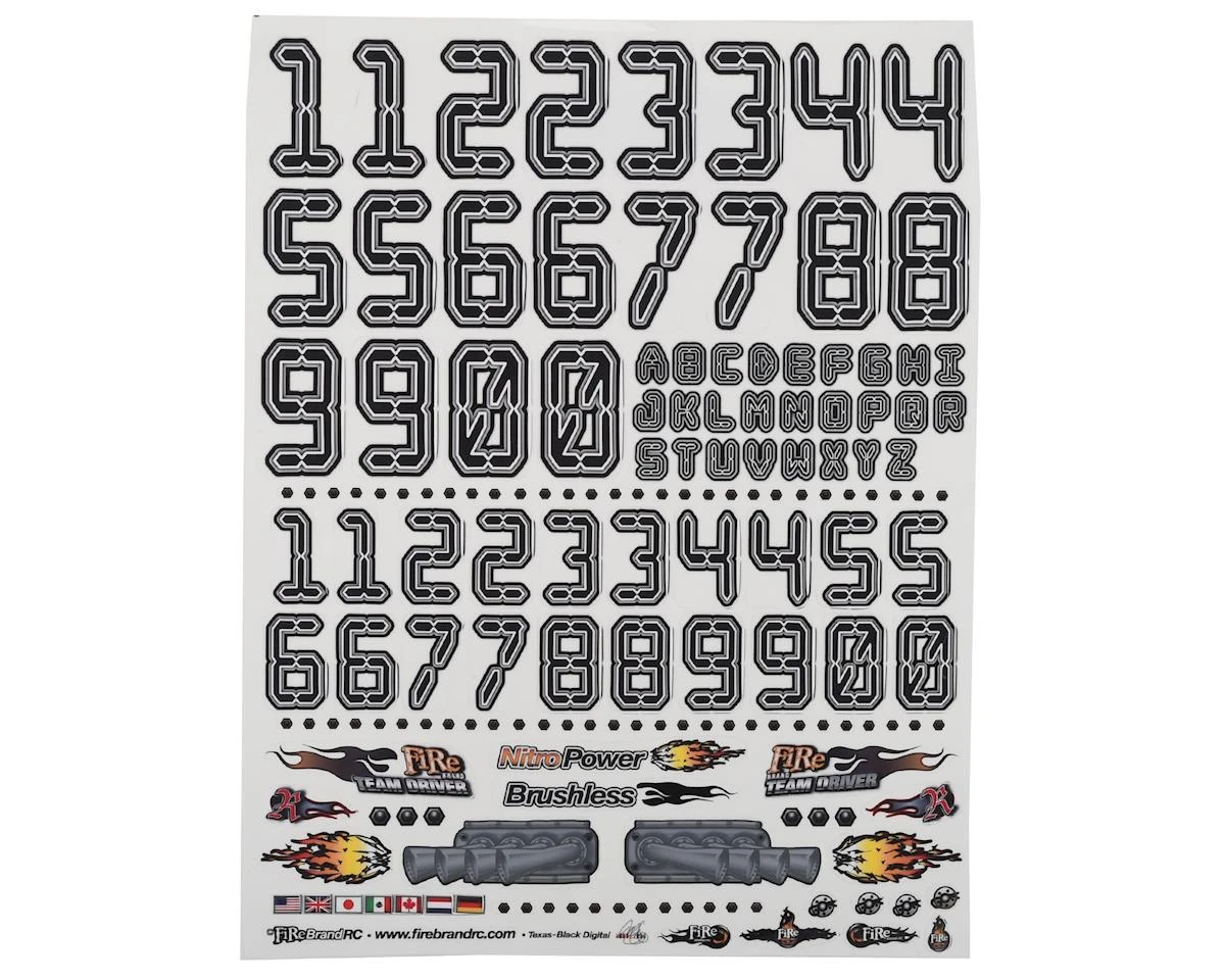 Firebrand RC Numbers Decal Sheet (Black) (8.5×11″)