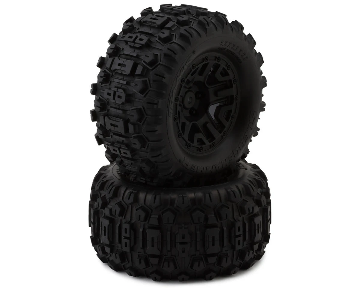 Traxxas Sledgehammer 2.8″ Rear Pre-Mounted 1/10 Monster Truck Tires (Black) (2) w/12mm Hex