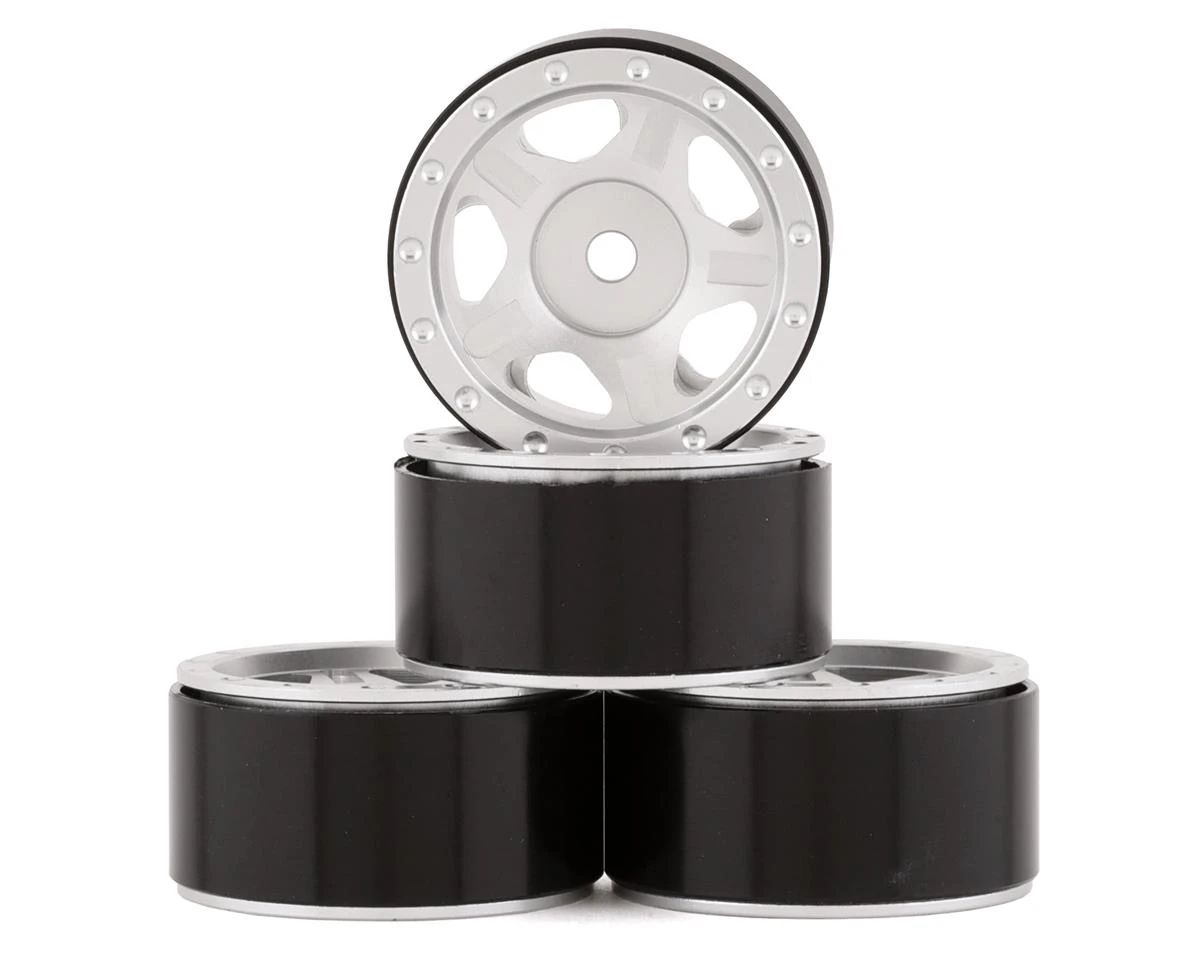 Yeah Racing SCX24 1.0″ Aluminum 5 Spoke Slotted Beadlock Wheels (Silver) (4)